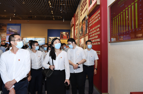 百年征程波瀾壯闊,百年初心歷久彌堅。黨史館猶如一部立體黨史教科書,全體參觀人員尋著中國共產黨百年歷史發展脈絡,仔細參觀了“建立中國共產黨 奪取新民主主義革命偉大勝利”“成立中華人民共和國 進行社會主義革命和建設”“實行改革開放 開創和發展中國特色社會主義”“推進中國特色社會主義進入新時代 全面建成小康社會 開啟全面建設社會主義現代化國家新征程”等4個部分的展覽內容。2600余幅圖片和3500多件套文物實物,全方位、多角度地展現了黨的不懈奮斗史、不怕犧牲史、理論探索史、為民造福史、自身建設史。全體參觀人員認真觀看豐富翔實的圖片、資料和鮮活的實物、逼真的復原景觀,不時駐足討論,共同回顧感悟中國共產黨領導人民創造的新民主主義革命的偉大成就、社會主義革命和建設的偉大成就、改革開放和社會主義現代化建設的偉大成就、新時代中國特色社會主義的偉大成就。