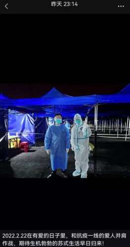 朋友圈里,他這樣記錄道:“2022.2.22在有愛(ài)的日子里,和抗疫一線的愛(ài)人并肩作戰(zhàn),期待生機(jī)勃勃的蘇式生活早日歸來(lái)!”