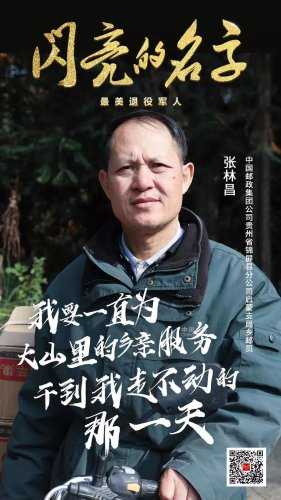 張林昌1983年入伍,1987年退役后主動申請到全縣最難走的郵路送信送報,32年來堅持為偏居一隅的苗族侗族同胞投遞報刊、郵件140多萬件,在大山里跋涉超過24萬公里,相當于走了19次“二萬五千里長征”;他義務(wù)為山區(qū)群眾代購農(nóng)作物良種、生活用品,代取款,被群眾稱為“鄉(xiāng)郵路上的天使”和“九十九道拐上的綠色使者”。他曾獲全國勞動模范、第四批全國崗位學雷鋒標兵、中國好人、全國模范退役軍人等稱號。
