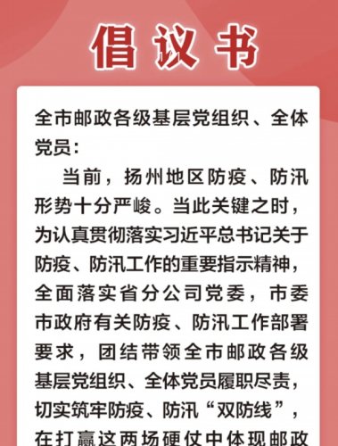 一篇倡議書(shū),展現(xiàn)了全市郵政干部員工在這關(guān)鍵時(shí)刻,愿意勇挑重?fù)?dān)、齊心協(xié)力的擔(dān)當(dāng)作為。