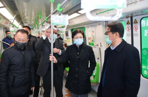 市長韓立明乘坐地鐵三號線。