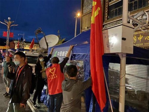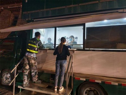 “網絡連上了,設備弄好了,燈亮起來了!”當天16時,經過近2個小時趕路,流動服務車開到了磨西鎮貢嘎廣場。在甘孜州縣兩級應急救災指揮部、海螺溝管理局的幫助下,磨西郵政支局和趕來支援的甘孜州郵政分公司員工、電力公司技術員、消防官兵一起,迅速完成場地搭建和設備調試,為流動服務車正式營業做好了準備。
