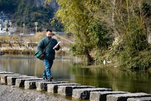 在貴州省龍山鎮,莫富元準備投遞郵報(2月14日攝)。