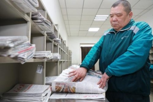 郭紅崗正在分揀報紙。 劉紅女攝