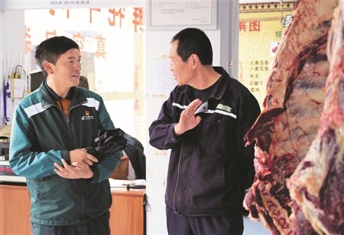 哈弄奪機向牦牛肉商戶了解最新的市場行情?!跣氯A社記者 李賀 攝