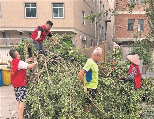 8月1日,福建省晉江市郵政分公司洋埭支局黨員干部得知陳埭鎮海尾村正開展臺風災后“潔凈家園”活動后,主動組建志愿者隊伍,全力參與災后恢復和清潔工作。經過一上午的努力,道路恢復了通暢。海尾村村民紛紛表示感謝。