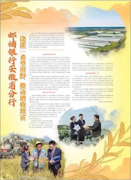 郵儲銀行安徽省分行將繼續立足安徽省情農情,圍繞現代農業發展新特點新要求,主動切入重要項目和重大工程,創新金融產品和服務模式,為“農業有干頭、農村有看頭、農民有奔頭”的壯美畫卷添上濃墨重彩的一筆。(數據來源:郵儲銀行安徽省分行)