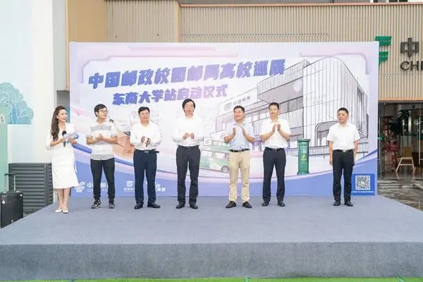 9月15日,中國郵政校園郵局高校巡展啟動儀式在東南大學校園郵局舉行。此次活動,以面向師生、服務高校為宗旨,通過“露營+城市打卡+家鄉農產品品鑒+郵政服務”于一體的模式,以線上直播、線下輕戶外打卡這些深受高校學子喜愛的方式,將在全國10省二十余所知名高校陸續展開。