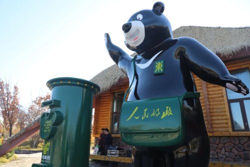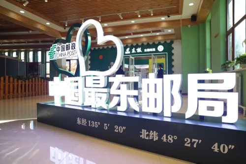 黑瞎子島位于我國最東端,是中國最早迎接太陽的地方,被列為國家級自然保護區。“東極”主題郵局位于黑瞎子島熊園游客服務中心,占地面積約50平方米,設有政務圖書展示、封片主題產品展示、有聲明信片打印、特色集郵產品展示、地方性農特產品展示等10余個功能區,并以紫氣東來、東極寶塔、黑熊、地標風景為元素,設計了18 枚紀念戳和37張主題元素明信片,以及魚皮畫和魚皮制品等地方性特色產品,為廣大游客提供多樣化的選擇。在服務中心廣場還設置了主題郵局吉祥物小熊“東吉吉”的異開筒,身高 3.2米的“東吉吉”憨態可掬,吸引眾多旅客駐足拍照,成為了一處獨具特色的打卡點。