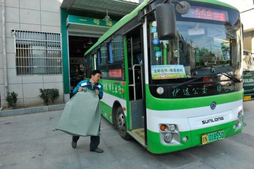 “袁師傅,來簽個(gè)字!”袁興斌是一名鎮(zhèn)村公交司機(jī),從2019年開始,“郵政快遞員”就成了他的第二職業(yè),556路鎮(zhèn)村公交從古碑鎮(zhèn)到千坪村,每天一趟,送件、載客兩不耽誤。