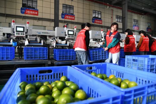 “在我們這條20多米的分揀線上,可以根據客戶要求設置果徑、重量等參數,精準篩選每一枚水果,大大提高了分揀效率。”三科農業副總經理劉翔介紹說。場地另一側,剛剛分揀好的水果被放上皮帶傳送機,郵政工作人員隨即將其裝車發往全國各地。