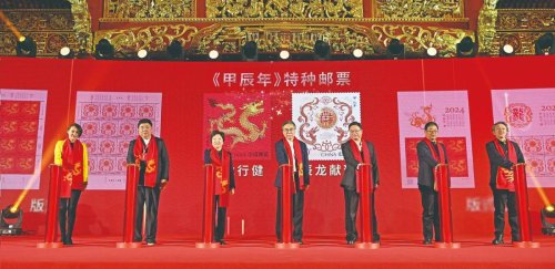 周慶富表示,生肖文化源遠流長,每年年初發行的生肖郵票將我國傳統民俗文化、歷史文化薈萃于方寸之間,兼具民族特色與時代特色,備受社會矚目。《甲辰年》特種郵票展現了我國優秀傳統文化的豐富內涵,又充分體現了新時代的文化自信與風采,以積極向上的精神氣質和吉祥美好的文化寓意為大家帶來新一年的祝福,通過“國家名片”鐫刻中華文明的厚重文化藝術,將民族記憶與時代文化傳揚四海。