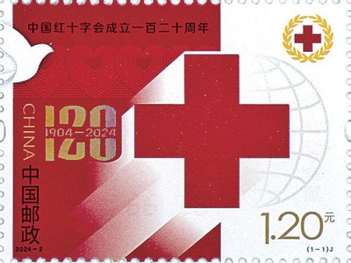 《中國紅十字會成立一百二十周年》紀(jì)念郵票圖案以紅十字為主體元素,結(jié)合環(huán)環(huán)相連的心形圖案與和平鴿等元素,陽光照射下的紅十字象征著“人道、博愛、奉獻(xiàn)”的紅十字精神熠熠生輝,體現(xiàn)了中國紅十字事業(yè)120年的輝煌發(fā)展歷程。