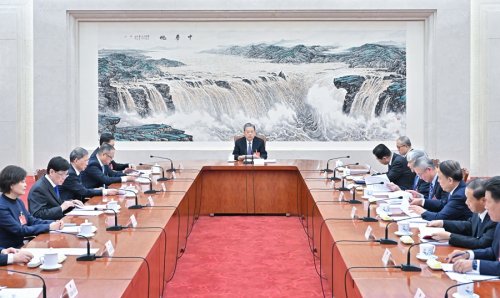 3月10日,十四屆全國人大二次會議主席團常務(wù)主席第二次會議在北京人民大會堂舉行。大會主席團常務(wù)主席、全國人大常委會委員長趙樂際主持會議。新華社記者 岳月偉 攝