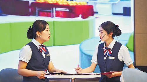 參賽選手進(jìn)行營業(yè)話術(shù)情景模擬。 □劉菲 攝