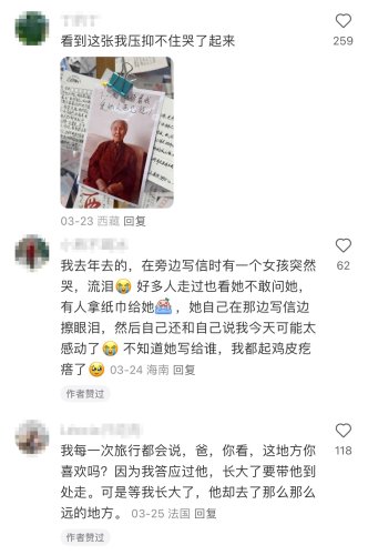 他拍下這些讓人哽咽的信件,發在社交平臺上,許多曾經到訪拉薩的游客都表示,自己也曾在這面墻前感動不已。