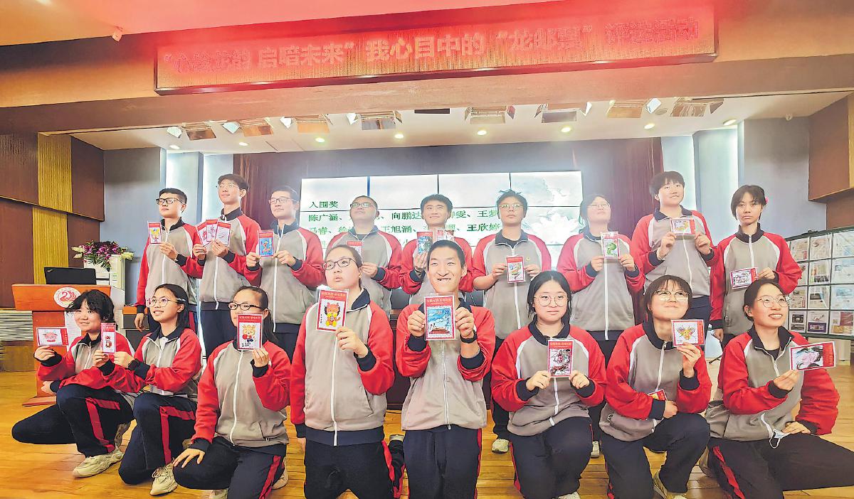 活動(dòng)現(xiàn)場(chǎng),董琪宣布了入圍和獲獎(jiǎng)名單,并對(duì)孩子們?cè)O(shè)計(jì)的龍郵票作品作了點(diǎn)評(píng)。本次評(píng)選共有8名學(xué)生獲獎(jiǎng),其中優(yōu)秀獎(jiǎng)2名、設(shè)計(jì)獎(jiǎng)4名、創(chuàng)意獎(jiǎng)2名。