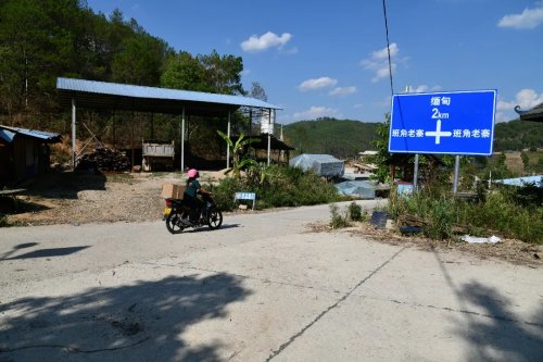 從阿里村出發,采訪組沿著臨近中緬邊界的抵邊村郵路前行,路旁的邊界安全提示牌以及“黨的光輝照邊疆,邊疆人民心向黨”的紅色標語牌都顯示出這里特殊的地理位置。采訪組一行的目的地班角老寨距中緬國境線僅1公里,與緬甸撣班和佤邦毗鄰,素有“國門第一寨”之稱。