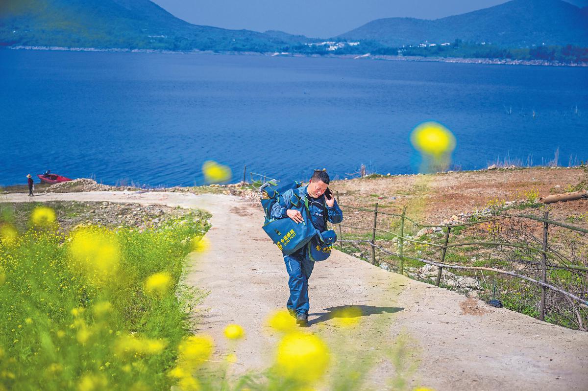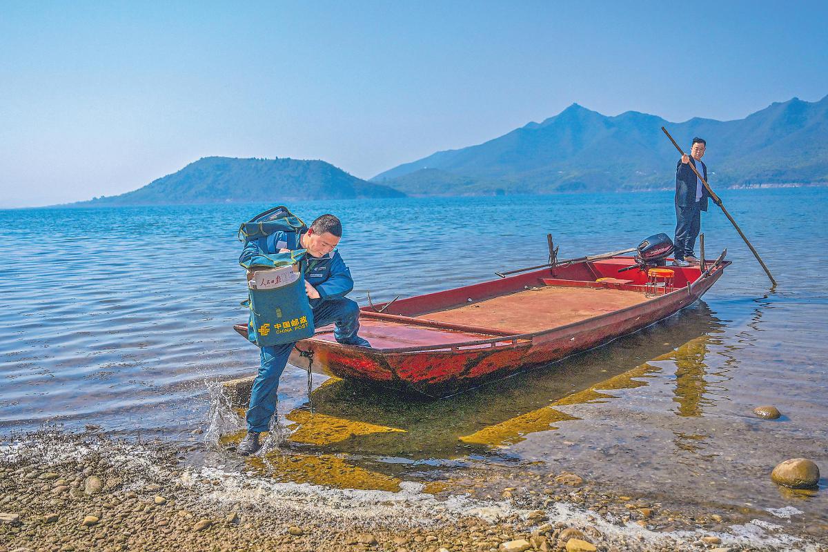 綠色摩托車(chē)、綠色郵包、絳紅色渡船、碧波蕩漾的水面和遠(yuǎn)處如黛的群山,石新國(guó)穿行其間,如同置身一幅青山綠水的秀美畫(huà)卷。“這條郵路我已經(jīng)走了20多年,只要鄉(xiāng)親們需要,我會(huì)一直走下去。”石新國(guó)堅(jiān)定地說(shuō)。