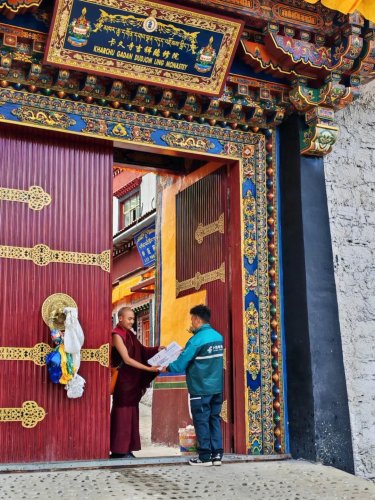 步行10分鐘,羅布多吉來到拉郊鄉政府,將《人民日報》和郵件送達后,便驅車前往德瑪龍村。