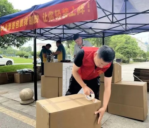 考慮到在校學生對學校和畢業生的情況都更熟悉,今年在郵校雙方合作基礎上,徐州郵政與學生會強化聯系,在駐點收寄期間,提供社會實踐名額,協助郵政人員進行校園包裹宣傳引導,拉近服務距離,提升收寄效率。據徐州郵政校園寄遞負責人楊兆清介紹,他們在此基礎上創新了郵校“1+1”駐點服務模式,即在每棟宿舍樓下安排1名郵政人員和1名學校的實習生,提供各類咨詢和搬運服務等。