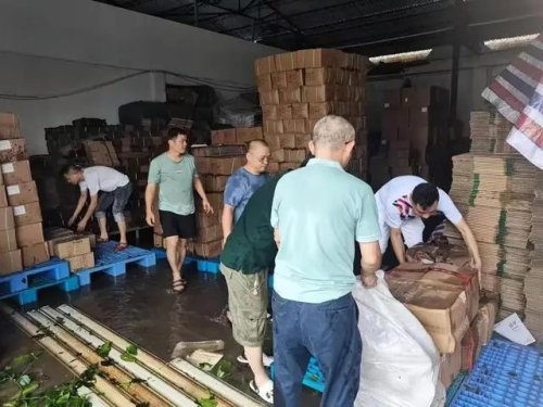 海口市郵政分公司工作人員正在搶救倉庫物資