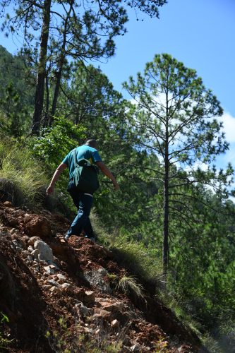 剛到木里時,采訪組曾跟隨何勇和王銀海從王順友故居出發(fā),沉浸式體驗了一段王順友的“馬班郵路”,曾經(jīng)的郵路已被茂密的植被覆蓋,但沿著那些深深淺淺的腳印,依然能找到路的蹤跡。山路陡峭且泥濘,沿途青岡草的荊棘刺痛皮膚,記者僅走了2公里就氣喘吁吁,但遠(yuǎn)處還有海拔4192米的查爾瓦梁子、水流湍急的雅礱江、懸崖邊的“九十九道拐”需要穿越。