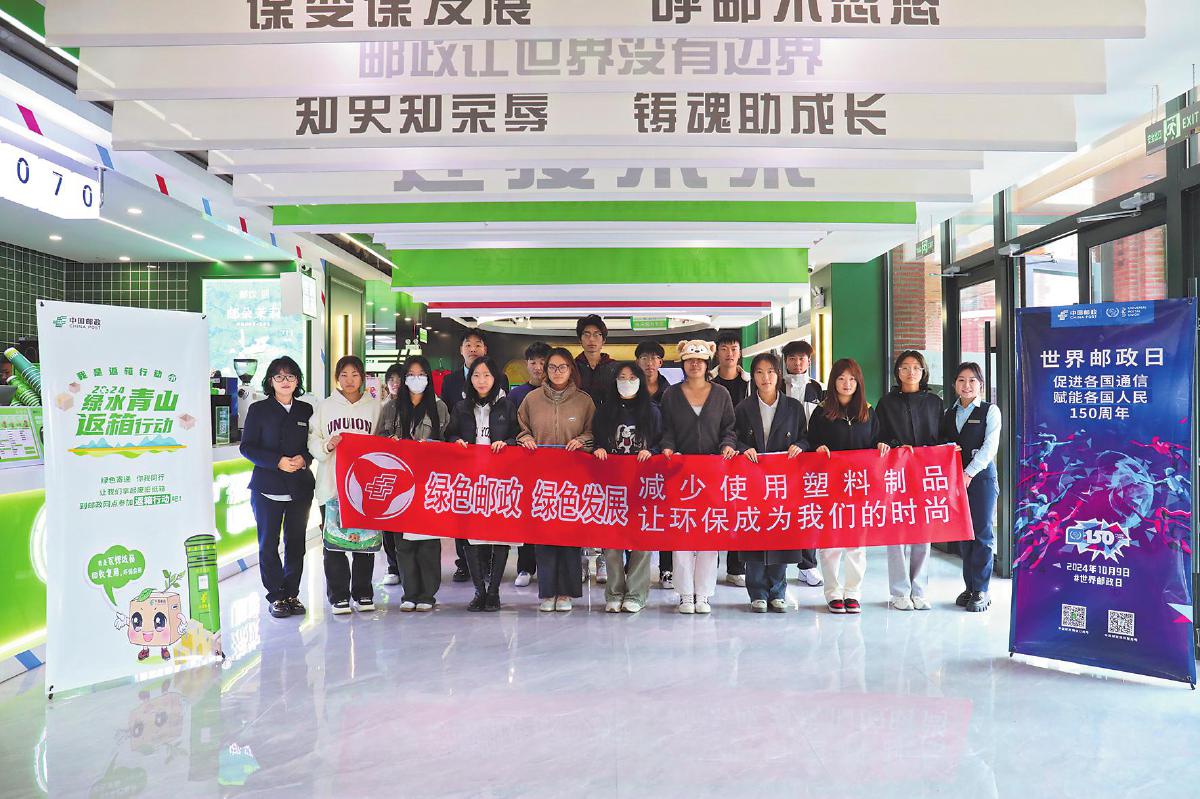 內蒙古自治區郵政分公司會同呼和浩特市郵政分公司,以全區首家校園主題郵局——思成建院主題郵局為陣地,組織開展了世界郵政日主題宣傳活動。“綠色郵政為美好生活加速”環保活動、財富投教宣講、助農直播等豐富多彩的活動吸引了廣大師生的關注和參與。 □王圓圓 攝
