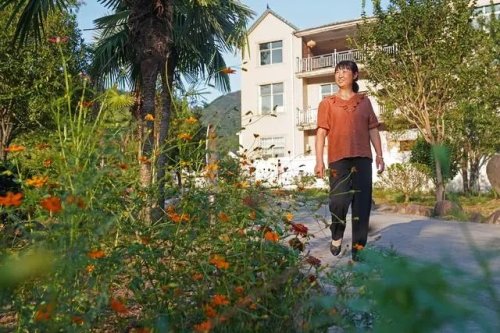 沿著盤山公路上行,汽車開進了沽溪村。群山環抱著整齊的新樓房,鮮花點綴在整潔的村道兩旁,村民在院子里晾曬收獲的稻谷。
