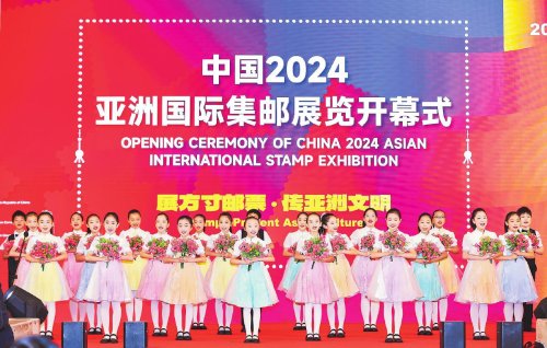中國福利會少年宮小伙伴藝術(shù)團在亞郵展開幕式上表演開場節(jié)目《永遠在一起》。□郭尤 攝