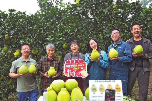 江津郵政與果農(nóng)一起直播帶貨,共迎柚子豐收。