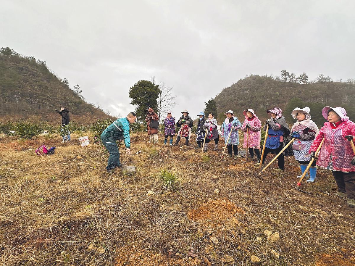 冒著綿綿的細雨,全國人大代表、貴州省黔南布依族苗族自治州龍里縣郵政分公司投遞員莫富元第一時間來到該縣平西村油茶基地,在田間地頭向村民宣講全國兩會精神,增強了大家對未來發展的信心。 □韓靜樺 何航 攝