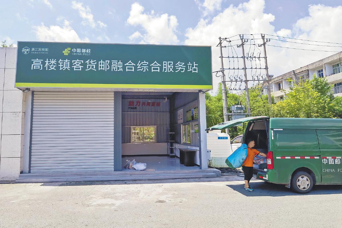 在浙江瑞安高樓鎮(zhèn)客貨郵融合綜合服務(wù)站,郵政投遞員正在裝卸郵件。 □李哈妮 攝