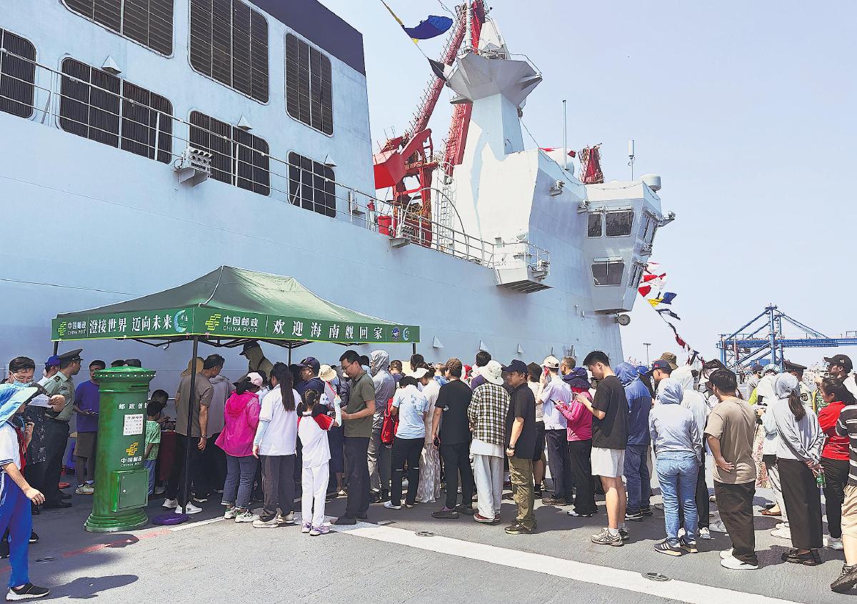 在人民海軍成立76周年之際,入列4年的海南艦回到“家鄉(xiāng)”,于海南省澄邁縣馬村散貨碼頭穩(wěn)穩(wěn)靠港。4月24日至26日,海南艦面向公眾開放。澄邁縣郵政分公司抓住機(jī)遇,積極開展雙擁共建工作,主動參與艦艇開放日活動,宣傳海軍建設(shè)成就。