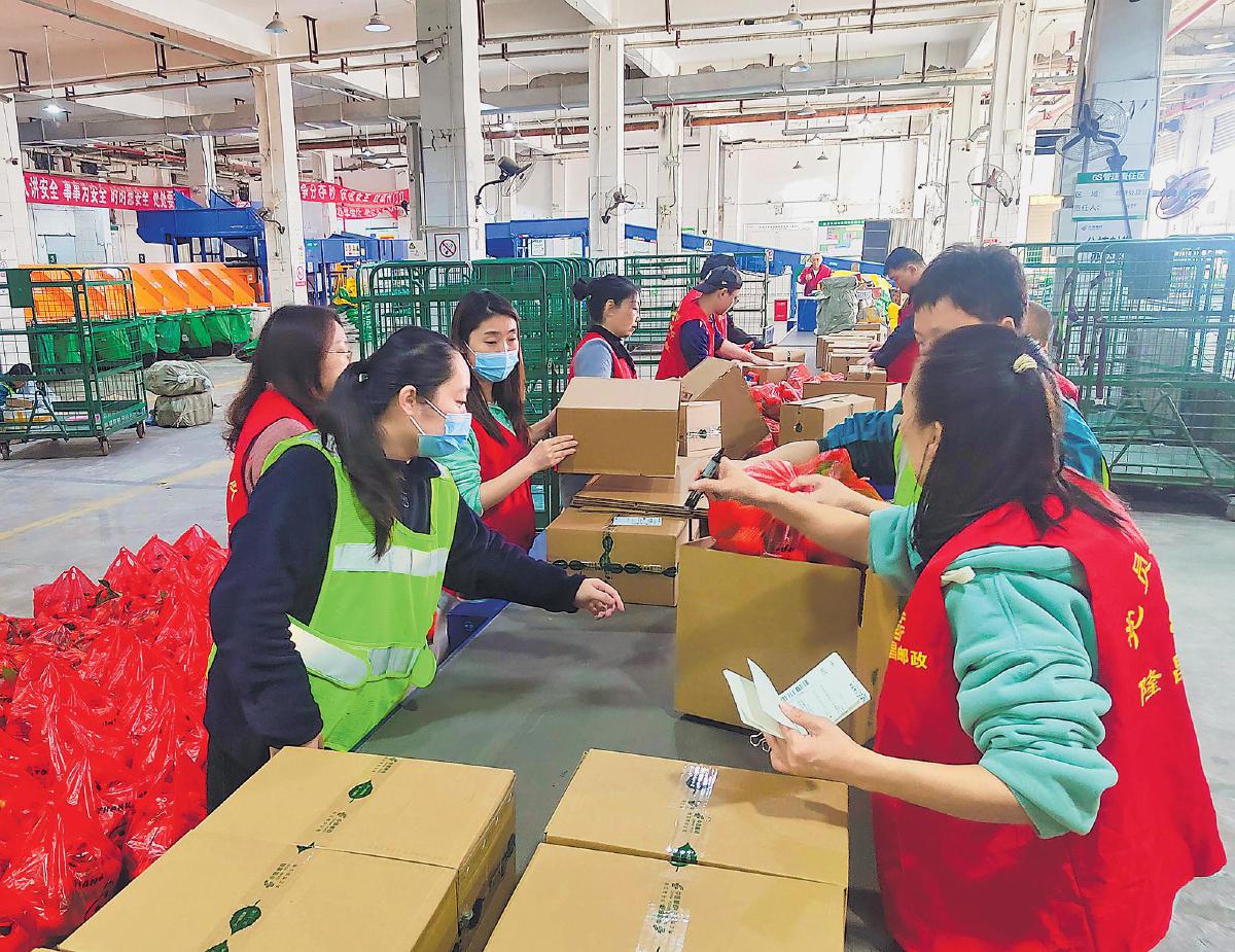 在隆昌郵政郵件處理中心,分揀人員和幫扶黨員準(zhǔn)備好泡沫箱、充氣柱、特制農(nóng)產(chǎn)品運(yùn)輸箱,熟練地打包上一場助農(nóng)直播銷售的600余單沃柑,訂單核對、產(chǎn)品分裝、貼單封箱、裝車發(fā)運(yùn),各環(huán)節(jié)高效銜接,6小時連續(xù)奮戰(zhàn)確保了所有包裹當(dāng)天發(fā)出。