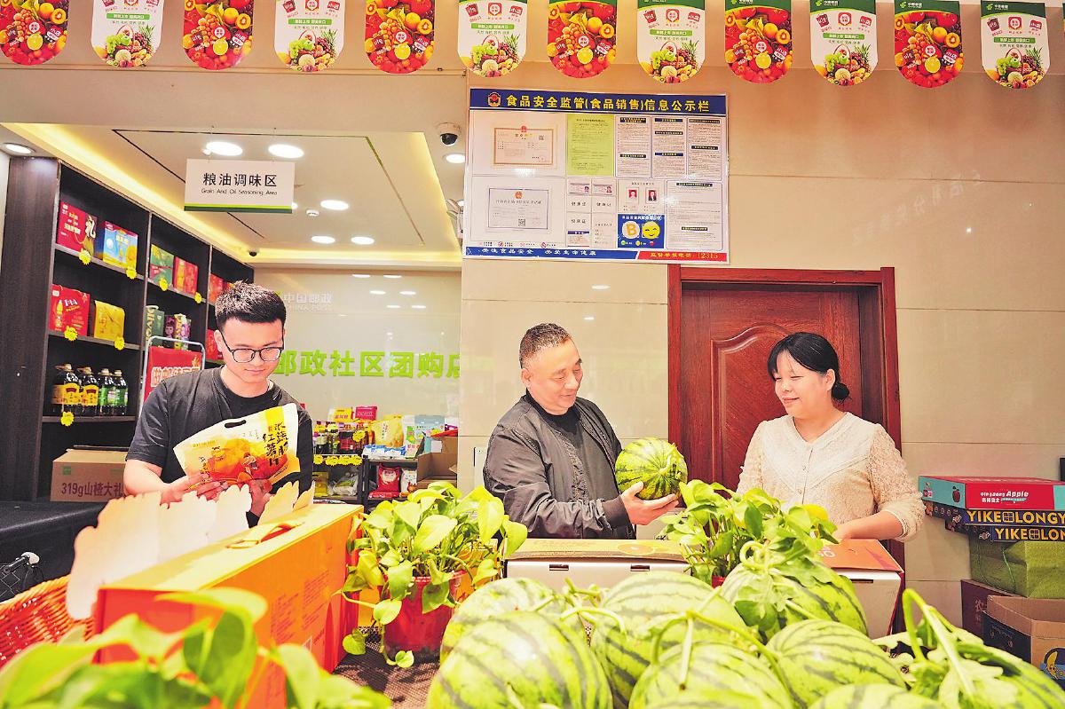 商丘郵政社區(qū)團購體驗店打造線上線下消費新模式。□王化辰 攝