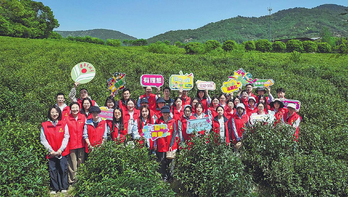 春茶貴如金。丁蜀鎮上壩村老上壩生態農業發展專業合作社迎來了一年中最忙碌的采茶季。宜興市郵政分公司作為該合作社的黨建聯盟單位,在了解到合作社面臨采茶用工短缺的難題后,向全體團員發出助農號召,成立“助農采茶”志愿服務隊,以“采茶+直播”形式助力茶農增產增收。“五四”青年節前夕,無錫市郵政分公司及所轄江陰、宜興市分公司團委聯合開展“點燃青春引擎 賦能‘錫’望田野再出發”“五四”青年節主題團日活動,組織40余名團員青年走進上壩村,開啟一場青年與鄉村振興雙向奔赴的“心靈之約”。