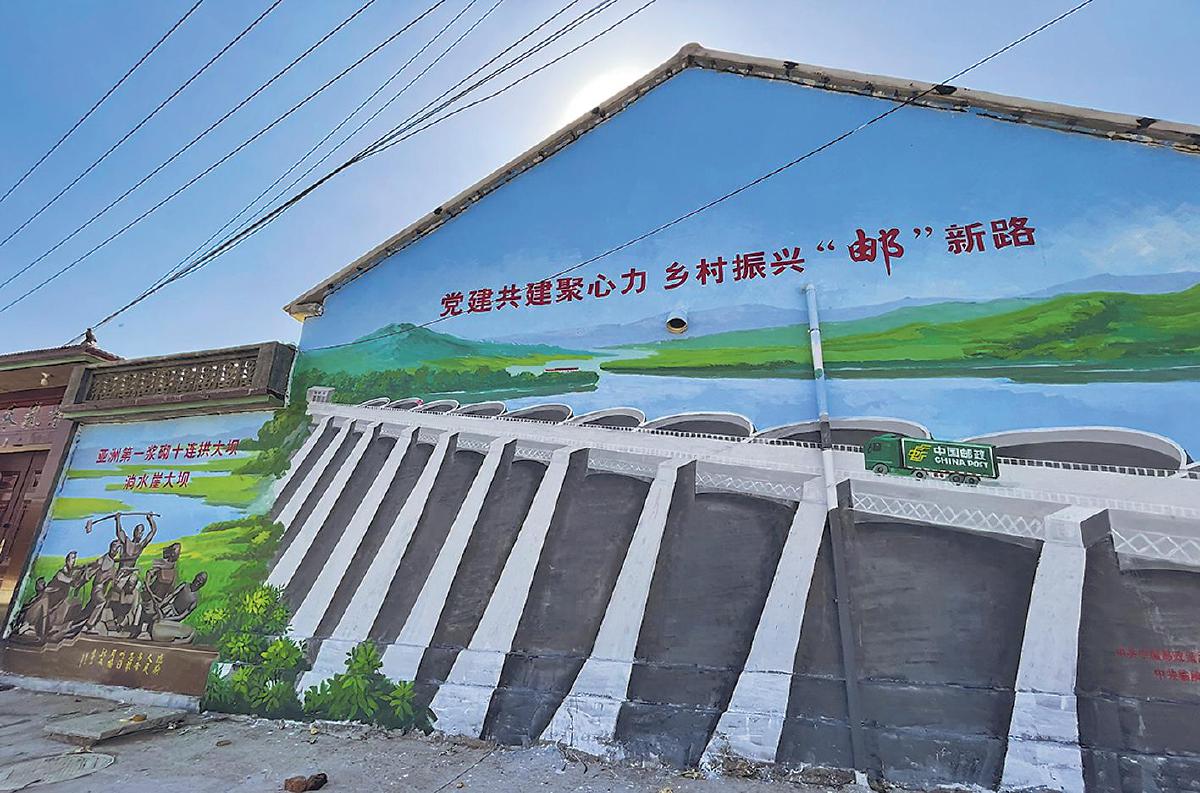 展示“亞洲第一漿砌石拱壩”的淌水崖水庫墻繪。