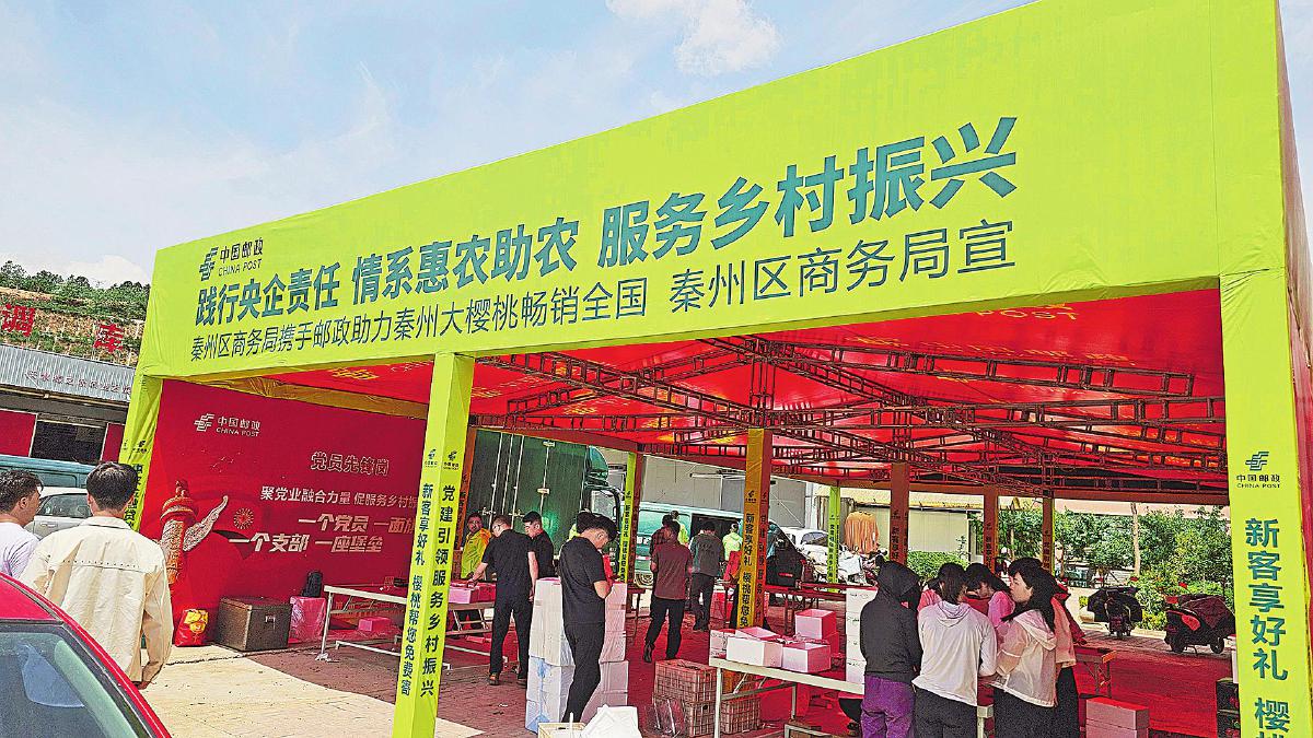 秦州區郵政分公司積極對接區政府、區商務局,與天水紅櫻桃農業發展有限公司共同合作,邀請天水市郵政分公司直播團隊助銷;參加信合物流園紅櫻桃果蔬批發市場電商產業園孵化開園儀式,加強電商平臺合作,助力天水大櫻桃“飛”往全國。