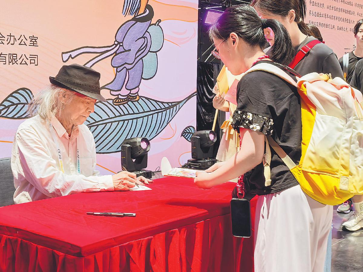 首發(fā)式上,蔡志忠先生為動(dòng)漫迷簽名。 □汪勇波 攝