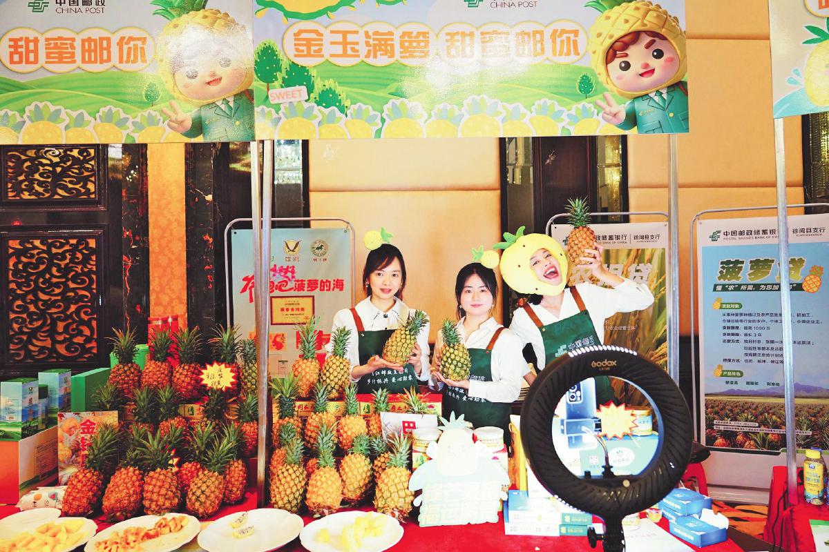 4月10日,湛江市分公司聯合徐聞縣政府、湛江市農業農村局、國家金融監督管理總局湛江監管分局、湛江市郵政管理局等單位,在徐聞舉辦了以“紅土育菠蘿,產業促振興”為主題的2025徐聞菠蘿(鳳梨)推介會。徐聞縣分公司與重慶果批市場、新疆維吾爾自治區郵政分公司、新疆紅星農場等簽訂了采購意向書,采購金額達500萬元。
