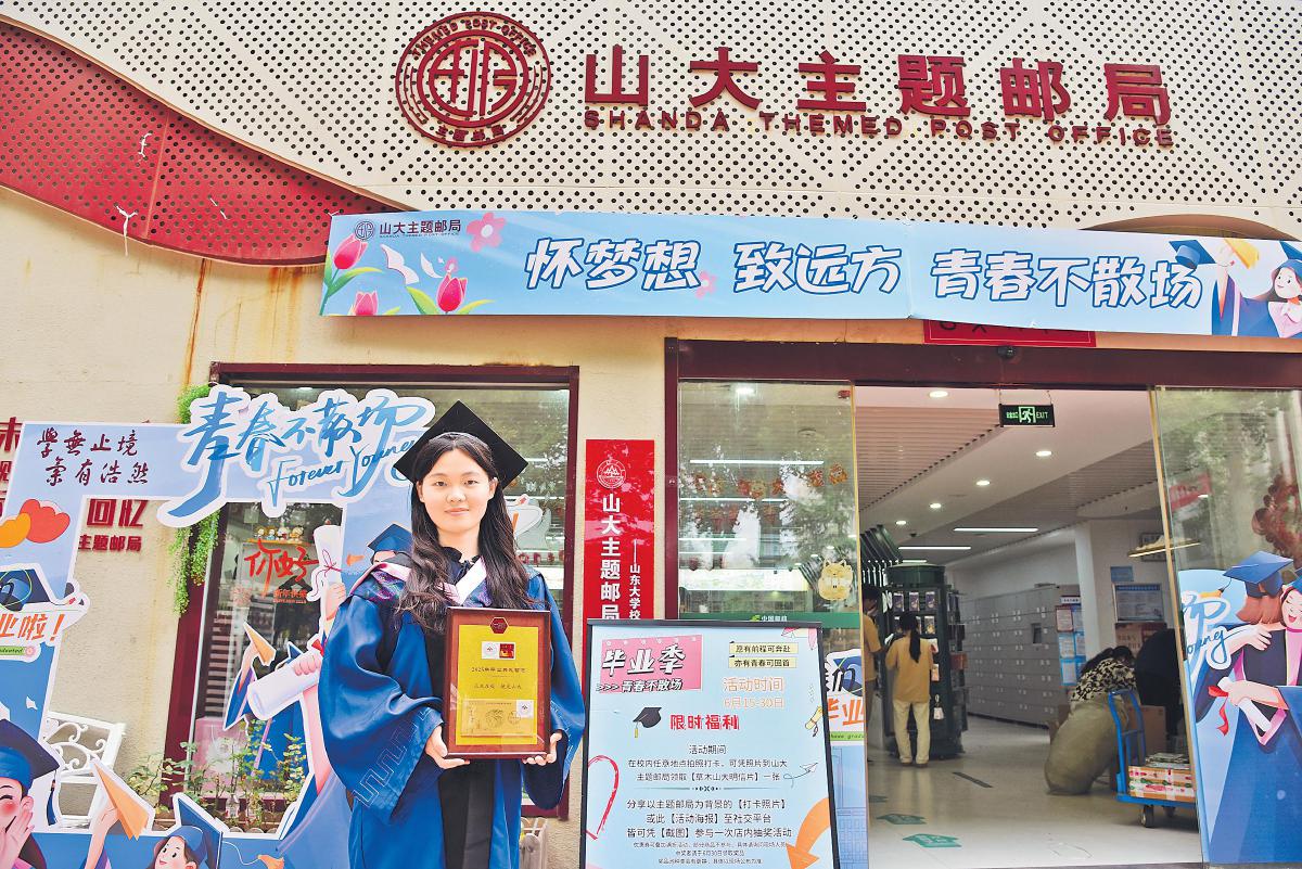 6月19—20日,山東大學舉行本科生、研究生畢業典禮,向畢業生頒發帶有山大專屬郵票的畢業紀念證書。