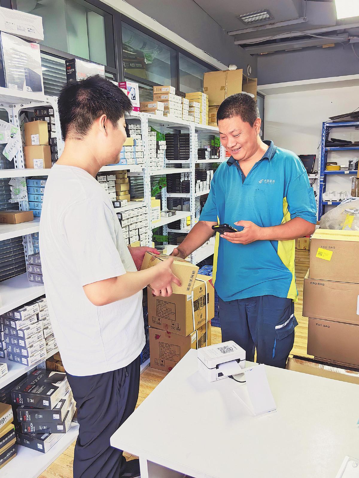 桑坡鞋服集群市場位于焦作市,旺季期間有商戶1000余戶。為有效解決“攬投服務在旺季無法覆蓋市場需求”這個問題,在2024年9—10月旺季的籌備期間,河南省、焦作市郵政分公司聯合組建自助寄件設備應用團隊,安排專人駐扎桑坡集群市場,跟隨攬投員一起走訪市場、開發客戶、布放設備。按照市場商戶寄件需求,實時組織技術人員優化流程,先后解決批量打單、設備信號、下單數量限制等困擾一線攬投人員的問題,滿足客戶多樣化寄遞服務需求。2024年10月—2025年1月旺季期間,該集群市場共布放自助寄件設備295臺,累計收寄特快郵件8.1萬件,實現特快收入61萬元,單日業務量峰值達到1779件。