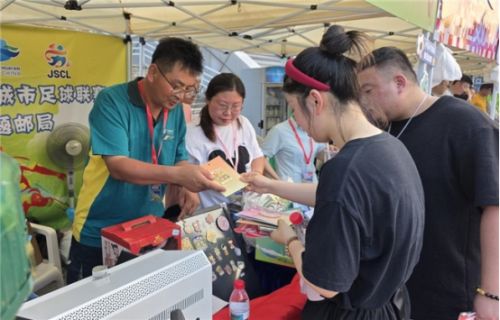 文創(chuàng)賦能,點燃賽場熱度。淮安郵政在賽場設立臨時郵局,創(chuàng)新推出融合地方特色與賽事激情的主題文創(chuàng)產品,如“吃龍蝦 看好球”主題帆布包、《淮安加油》個性化郵票郵折系列。此外,還在現場設有賽事專屬郵資機戳,提供集章打卡與球迷互動體驗,吸引了大批集郵愛好者和足球粉絲踴躍參與,主題文創(chuàng)產品備受球迷青睞。同時,寄遞事業(yè)部現場設立EMS寄遞便捷服務點,推出"賽事特惠寄"活動,提供賽事紀念品、運動裝備等寄遞服務,提升用郵體驗。