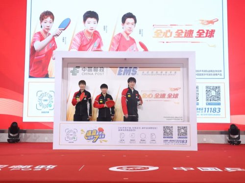 國乒世界冠軍參與中國郵政速遞物流(EMS)最新封套的發布。