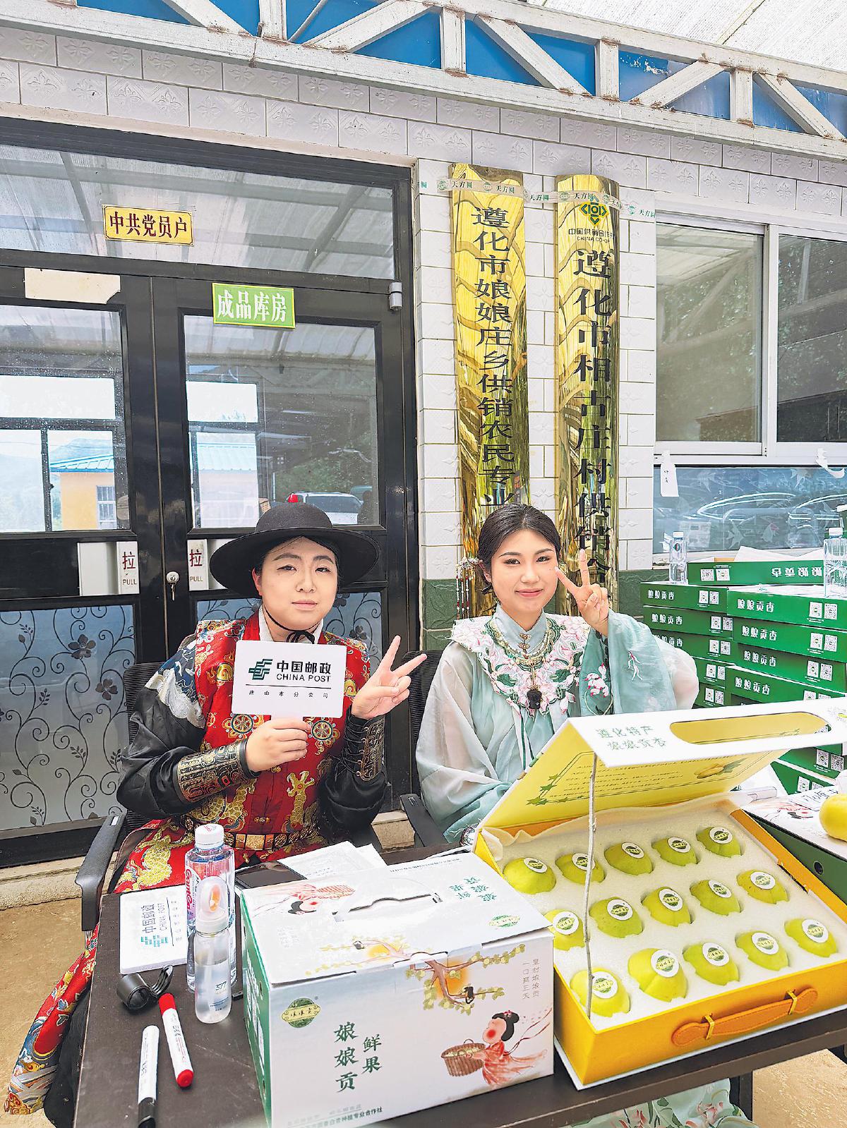 “《遵化州志》中曾記載:遵化東南二十五里,有村名相古莊,盛產銀白杏,因味道鮮美,被定為年貢?!薄跋鄠髟?00年前的明朝,還有一段與香白杏有關的愛情故事?!敝辈ラg里,主播身著“娘娘裝”,對有關“娘娘貢”香白杏的歷史記載、文化典故侃侃而談,在她身邊坐著“皇上”和“小黃”。