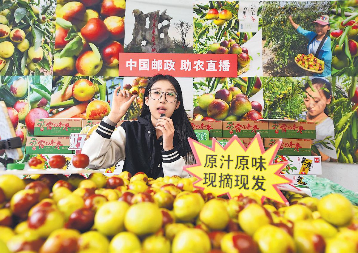 山東郵政開展溯源直播,全程呵護農(nóng)產(chǎn)品“郵味到家”?! 鯀菣u昀 攝
