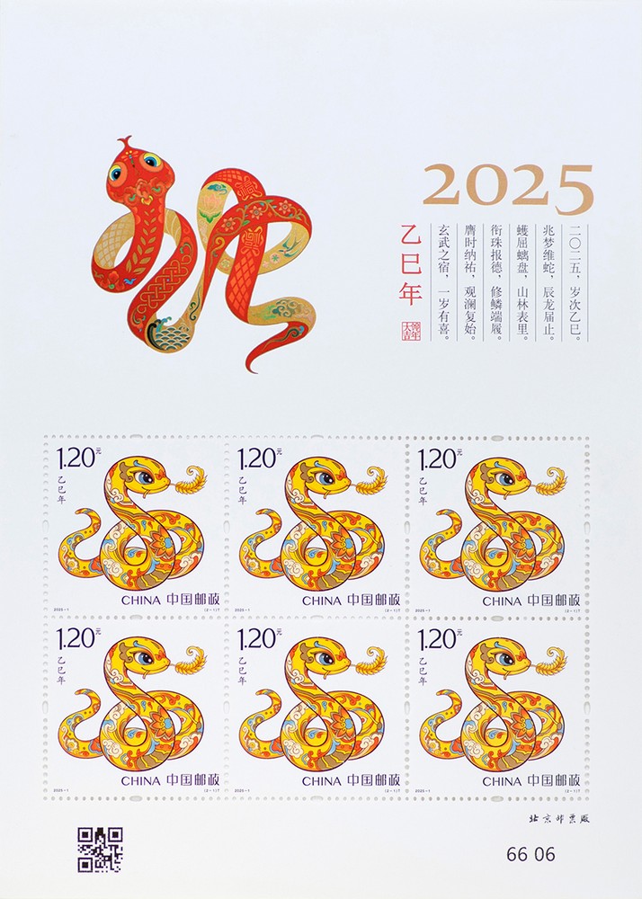 中國郵政定于2025年1月5日發行《乙巳年》特種郵票1套2枚,小本票1本。詳情如下: